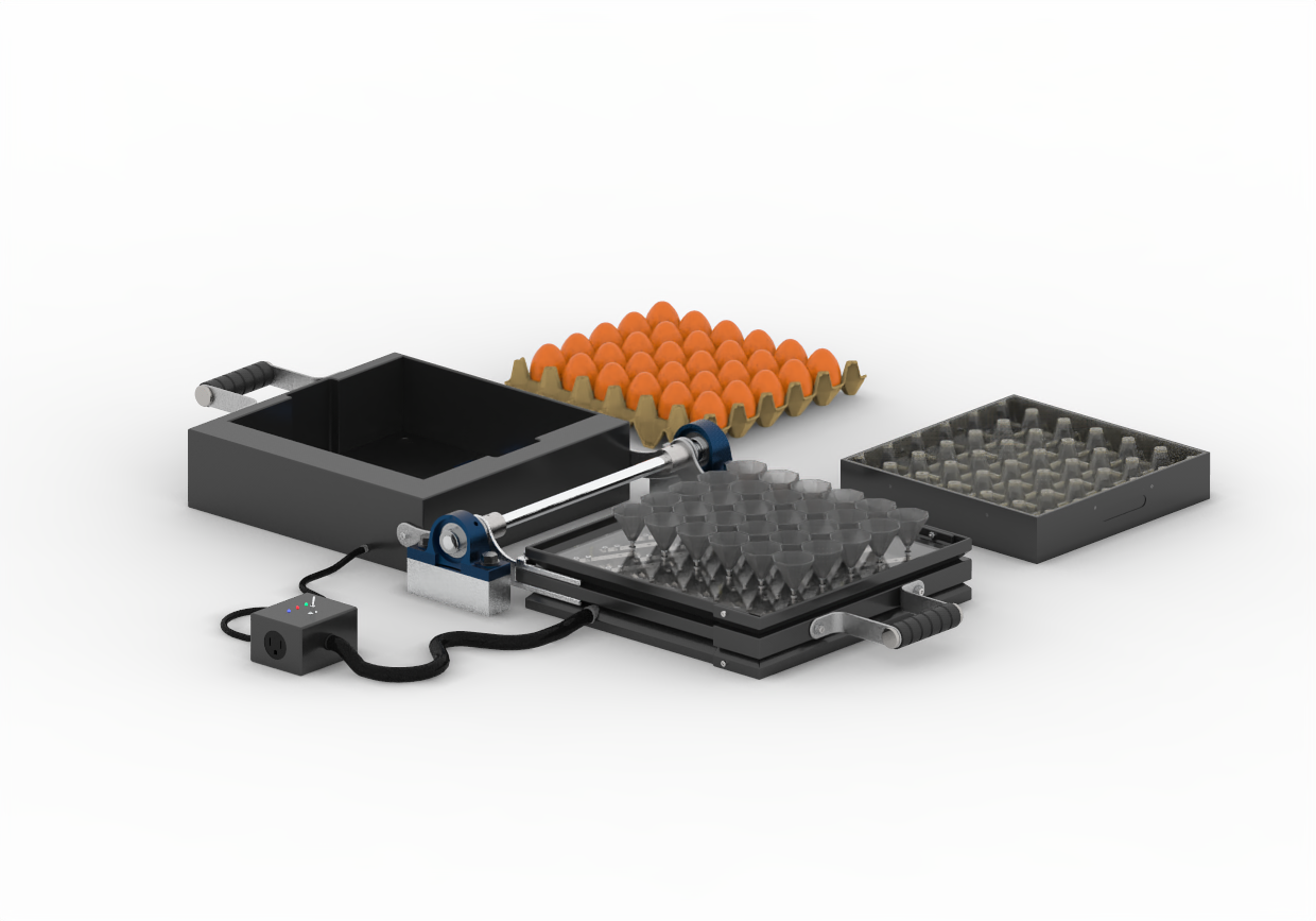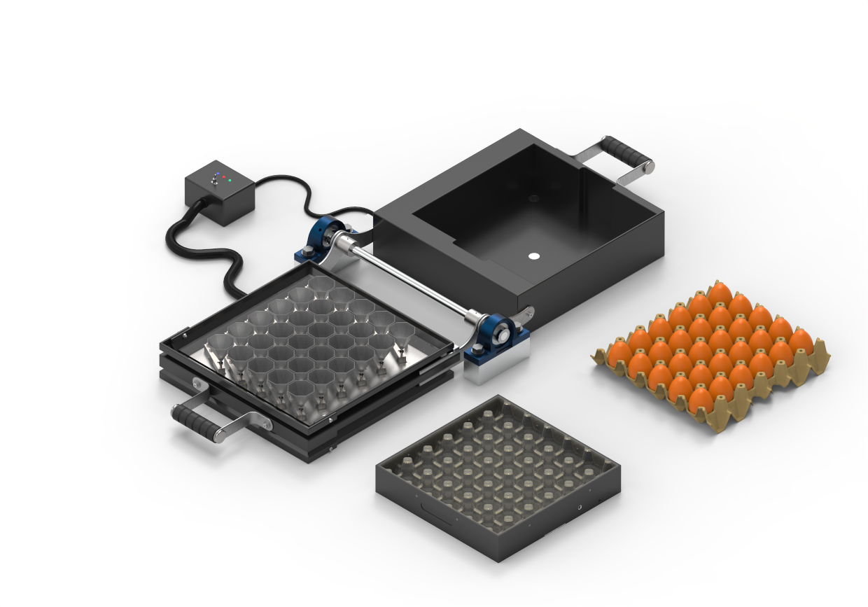 This work investigates and conceptualizes a state of the art in relation to the topic of egg weighing, in topics such as: Development of prototypes, electronic systems, artificial intelligence, and commercial machines. Subsequently, the requirements, needs and limitations of the design of an egg grading machine are determined through conversations with poultry producers in the region of Santander-Colombia. A prototype egg grading machine is designed following a series of design methodologies described in the literature for the creation of products. Using the software SolidEdge, a digital prototype capable of simulating the physical movement of the proposed model as a solution to the design problem is built. In addition, an electronic control scheme is proposed for the operation of the machine. The proposed design takes into account cutting-edge technology that incorporates technologies of the fourth industrial revolution such as IoT (Internet of Things) for data analysis and is designed especially for small and medium-sized egg producers.